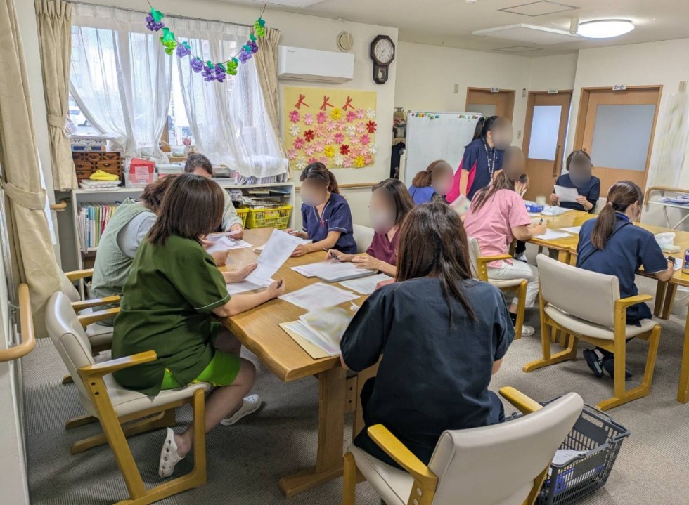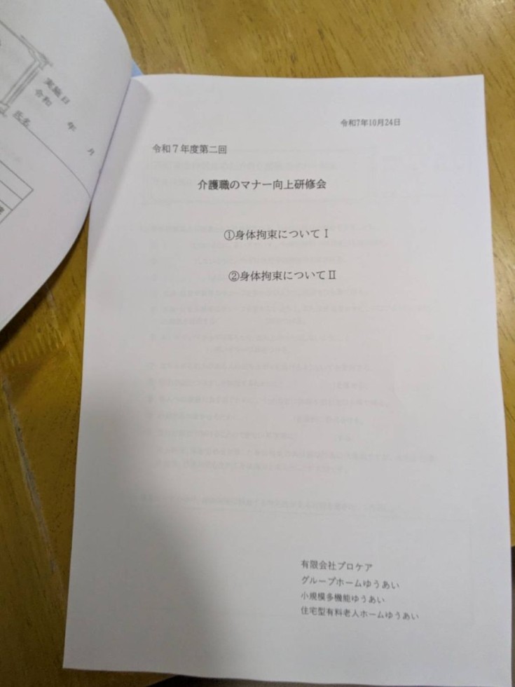その後、高齢者虐待防止委員会を行い、介護職員のマナー向上研修を開催。