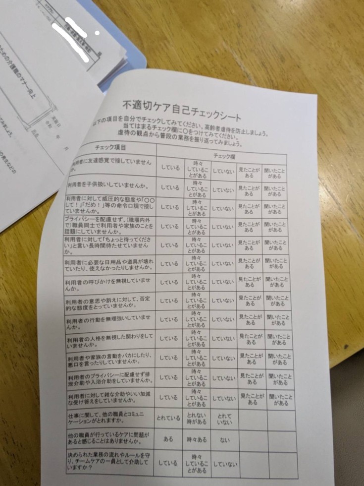 ご利用者様に対する何気ない行動がマナー違反になっていないか、新たな気づきになりました。